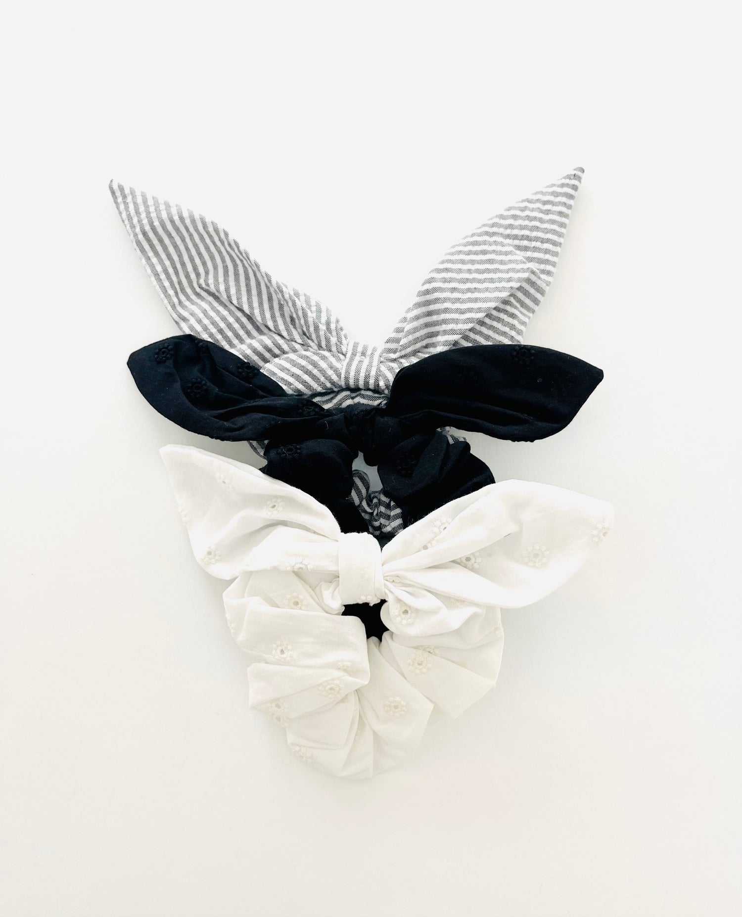 Our signature up-cycled cotton scrunchies featuring butterfly ties.