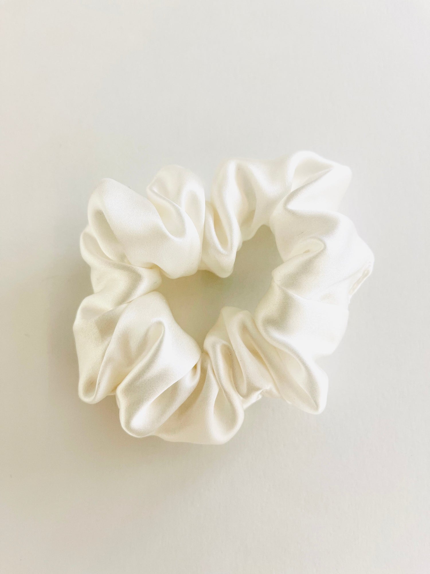 100% up-cycled silk scrunchies in solid colors. Perfect for no crease hair.